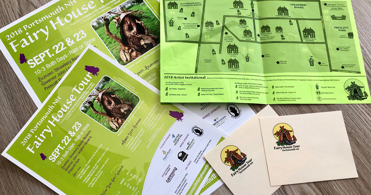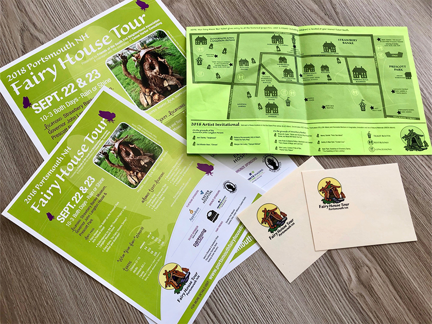 The Portsmouth Fairy House Tour, an annual two-day charity event featuring more than 200 naturally built fairy houses on three historic properties, attracts 6,000-8,000 people each year to Portsmouth’s historic South End neighborhood. For the past eight years, AlphaGraphics has partnered with the organizers to bring the event to life graphically.