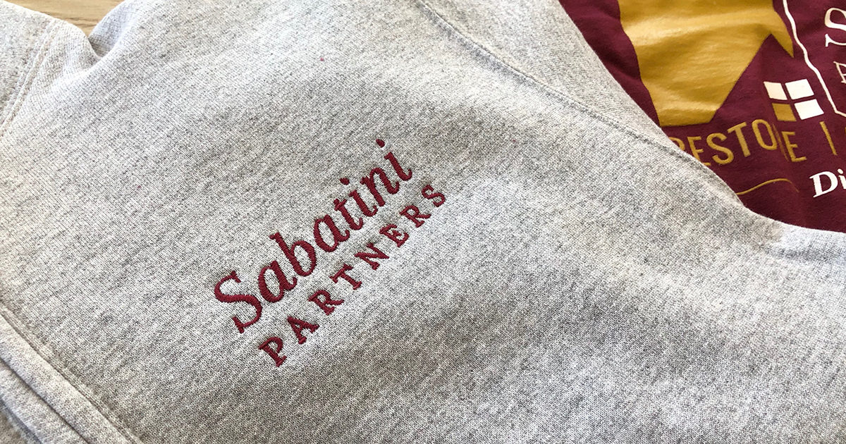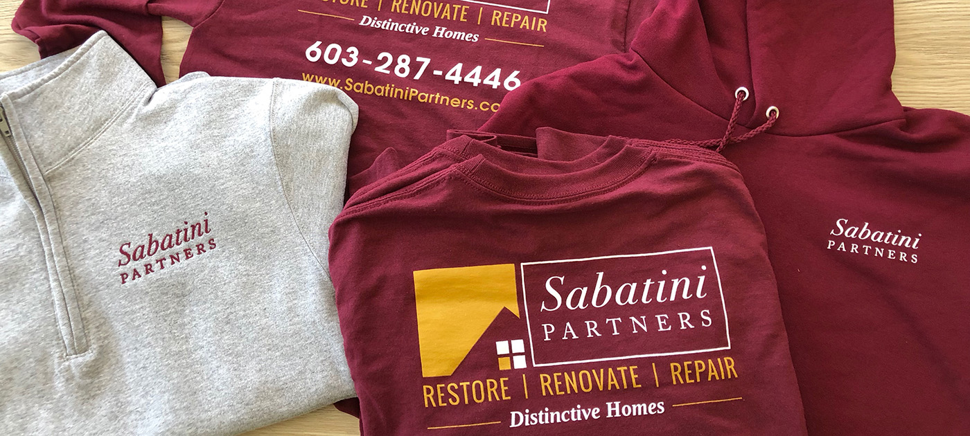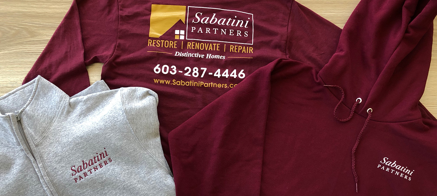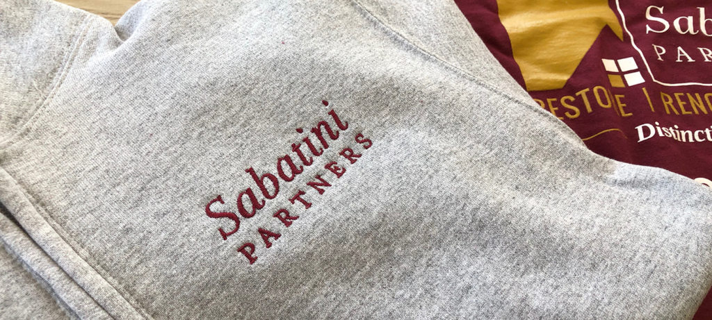 Over the past 20 or so years, Sabatini Partners owner Edward Sabatini has grown to appreciate [AlphaGraphics] as a “one-stop-shop” for all his business needs. The professional design and print team has done just about everything for Edward’s business including reproducing construction plans; refreshing their logo; creating vehicle graphics and window decals; designing letterhead, business cards, banners, and job signs; and even creating high-quality prints of the paintings Edward does in his spare time. So when Sabatini Partners was ready for a full set of high quality and durable branded apparel, Edward and his marketing coordinator, Marie Caswell, went to the [AlphaGraphics] team to see what they could do.