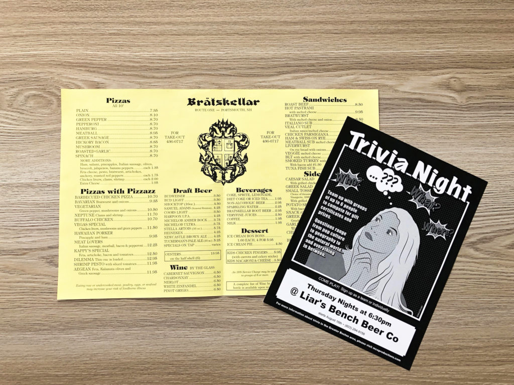 So what about those printed menus? When you read a menu, it seems to be such a simple act. However, dozens of decisions were made to create what you are reading. Restaurant menus can be large or small with a variety of details including sharp or rounded corners, folded or flat, color or white card stocks, coated papers or pre-printed shells. Menus may be handed out individually tableside, wall-mounted boards, banners, posters, sandwich boards, or Z-folded takeout menus.