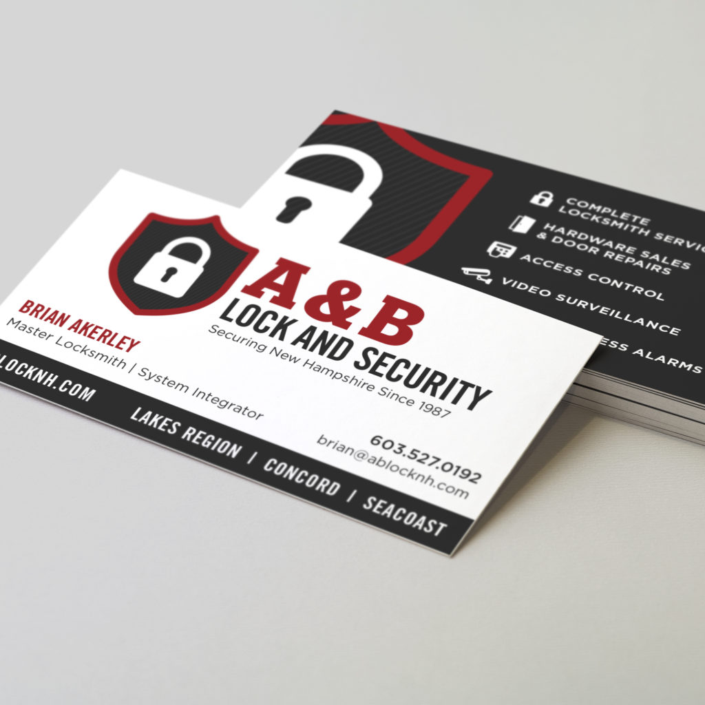 A little font tweaking can really add new life to your look without losing your overall brand image. Your company font says a lot about who you are and what you are selling. For example, tall and bold fonts might be more suitable for a service company like A&B Lock and Security (shown above), while something more delicate like an italic (slanted) font is more whimsical, better suited for a bistro, salon or children’s book. Likewise, fonts with serifs (feet) tend to be more traditional while sans-serif fonts (no-feet) can have a more modern feeling.